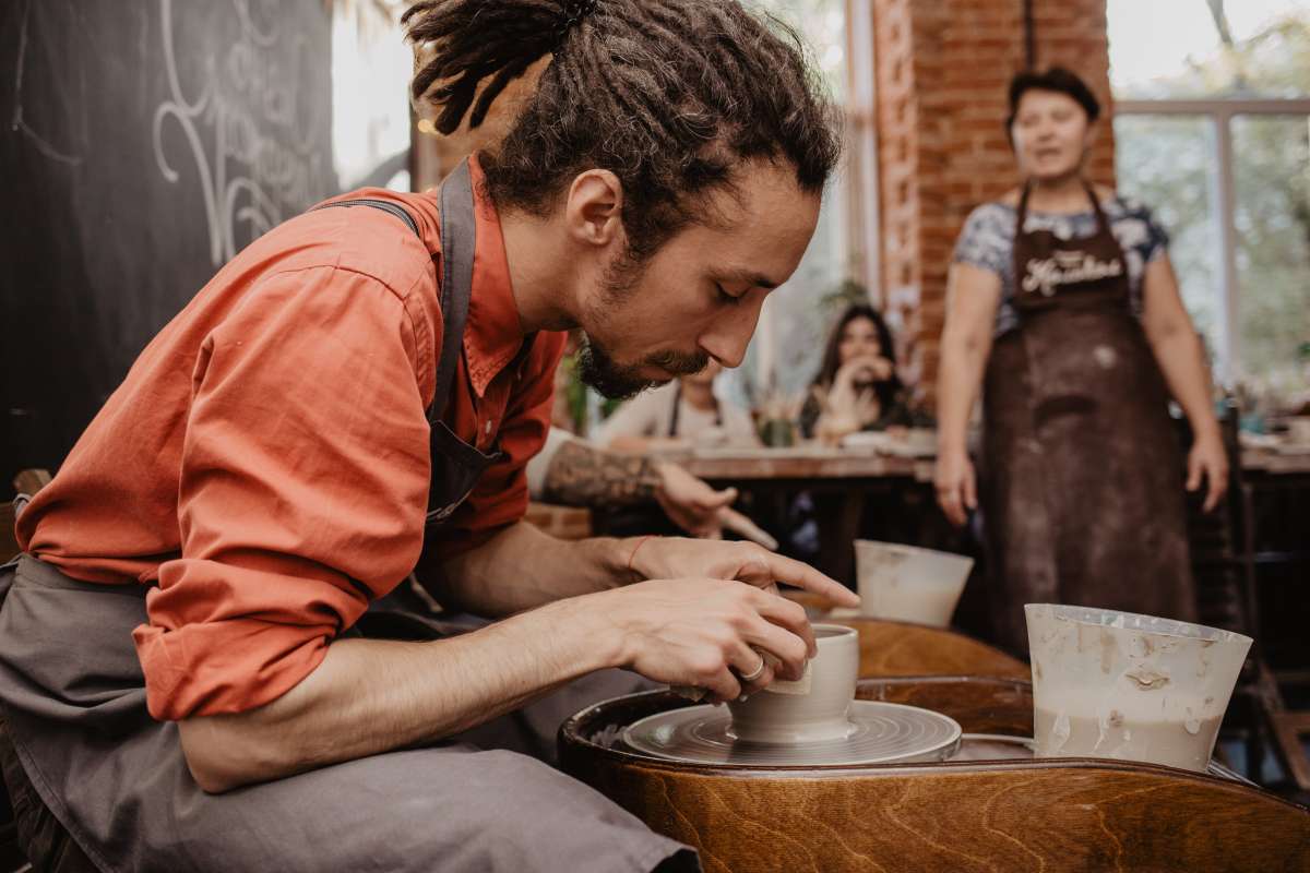 гончарный кругНа мастер-классе вы сможете создать собственный шедевр и не переживайте, если вы ни разу ранее не держали в руках глину – большинство наших гостей знакомятся с гончарным кругом у нас уже на первом занятии создают отличные по качеству изделия.