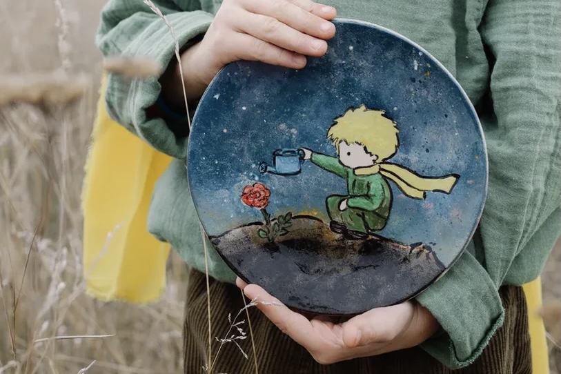На первом занятии мы сделаем тарелочку, которую слепим вручную, а после распишем ангобами. За основу возьмём сюжет из «Маленького принца» — чтобы всегда помнить, что «пустыня хороша тем, что в ней скрываются родники»